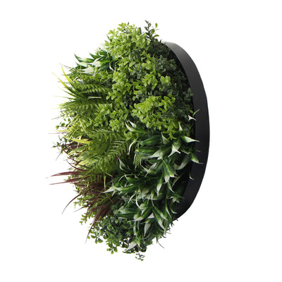 Slimline Artificial Green Wall Disc Art 80cm Mixed Green Fern & Ivy (Modern Black)