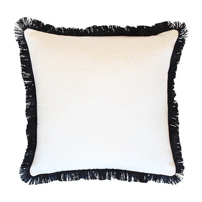 Cushion Cover-Coastal Fringe Black-Solid Natural-45cm x 45cm