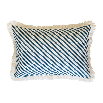 Cushion Cover-Coastal Fringe Natural-Side Stripe Teal-35cm x 50cm