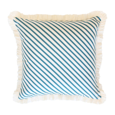 Cushion Cover-Coastal Fringe Natural-Side Stripe Seafoam-45cm x 45cm