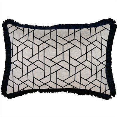 Cushion Cover-Coastal Fringe Black-Lunar-35cm x 50cm