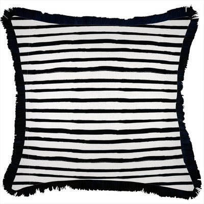 Cushion Cover-Coastal Fringe Black-Paint Stripes-60cm x 60cm
